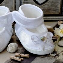 Buciki koronkowe BALERINKI ZE SREBRNĄ NITKĄ BIAŁE