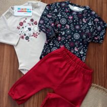 Komplet body/bluzeczka z ozdobnymi rękawami & legi print BURGUNDOWE KWIATY
