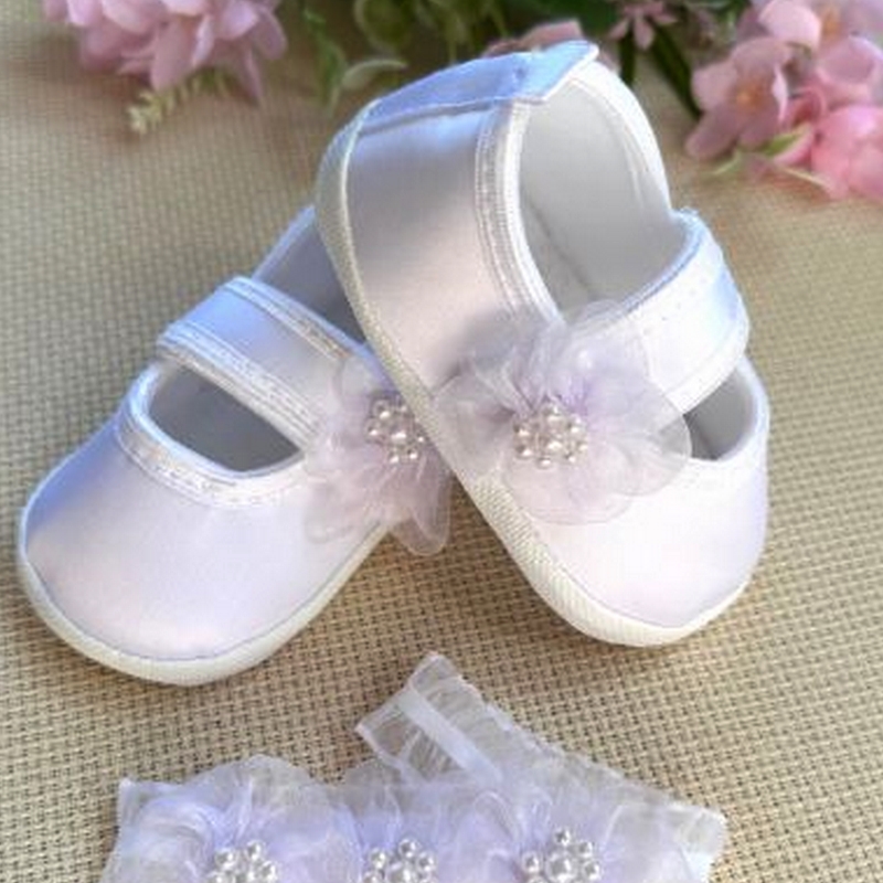 Buciki ozdobione uroczym kwiatkiem z organtyny