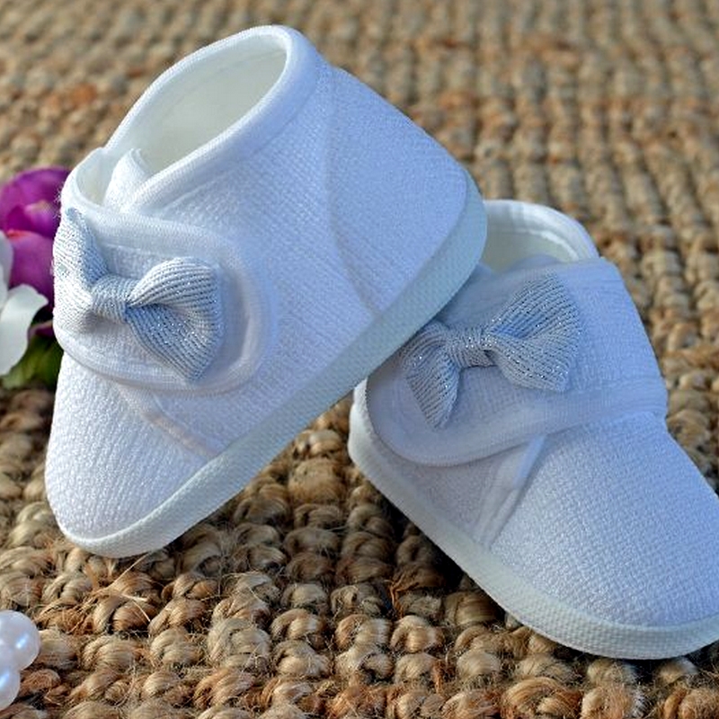 Białe, lniane trzewiki KOKARDKA ZE SREBRNĄ NITKĄ