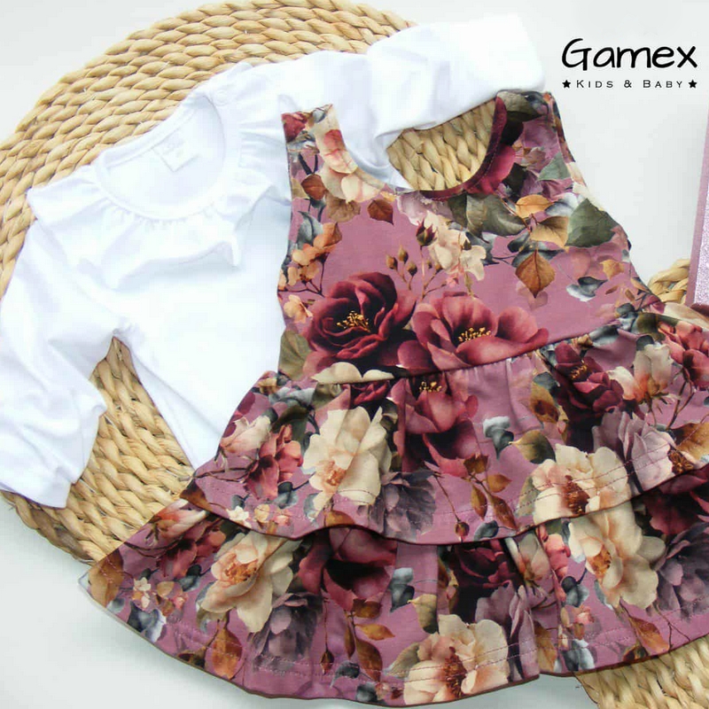 ładnie kontrastuje z białym body z falbanką- które jest w zestawie.