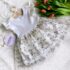 Dół sukni rozłożysty, uszyty z tiulu haftowanego w kwieciste gałązki.