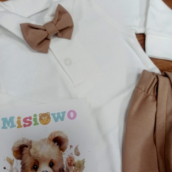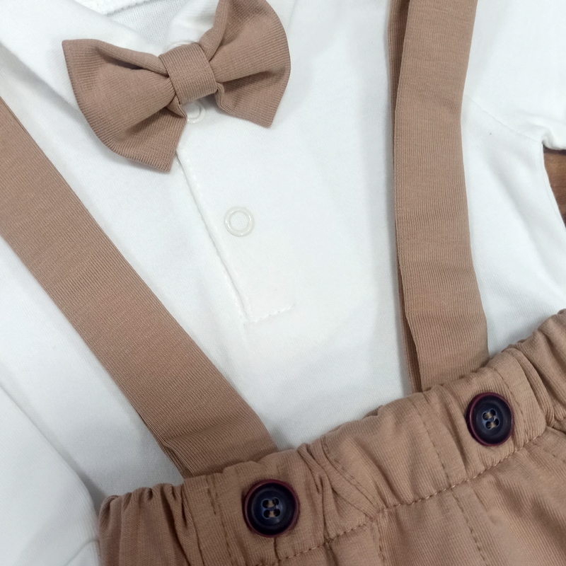 Elegancki 3 cz. komplet dla chłopczyka SZELKI KAWA Z MLEKIEM