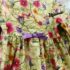 W pasie ozdobiona satynową wstążeczką w kolorze fioletowym,