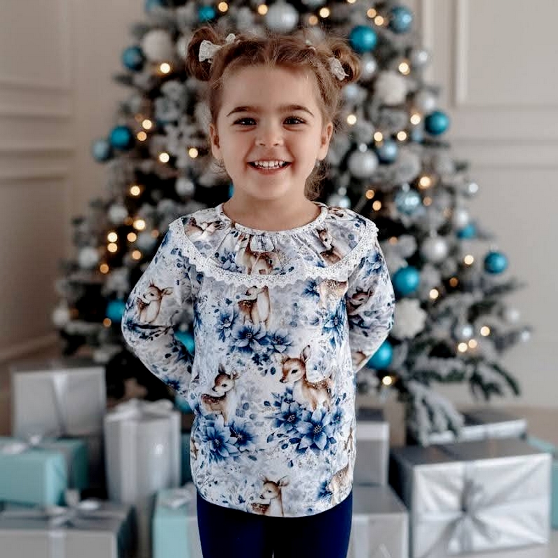 Elegancka bluzka dla dziewczynki w uroczy, cyfrowy print :