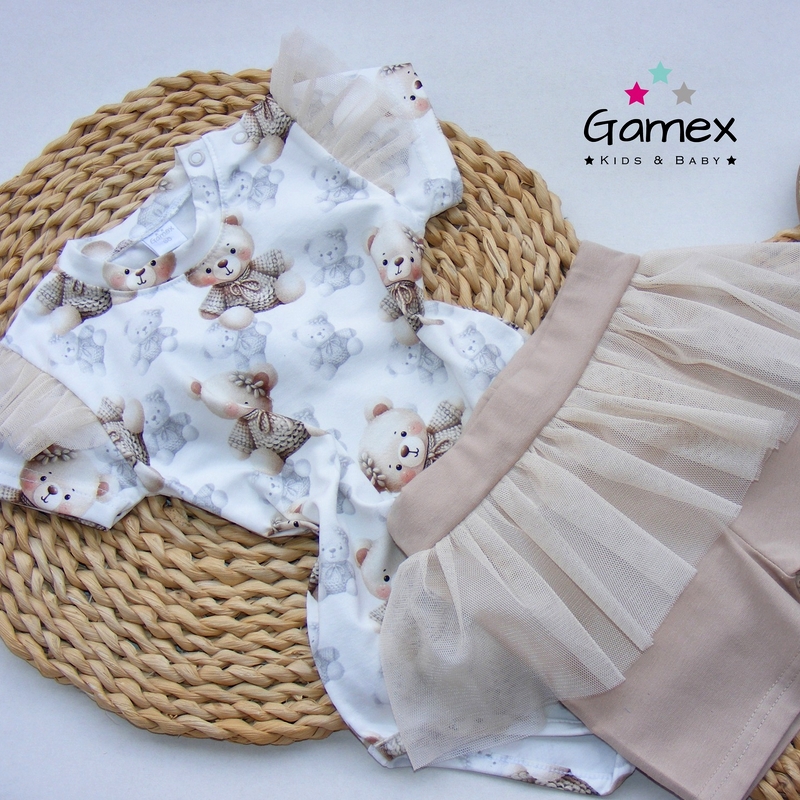 Zestaw body & spodenki z tiulem PASTELOWE MISIE